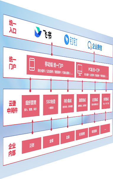 对协作平台提供支持服务,,支持企业应用与协作平台对接,,,包含组织同步、、消息集成、、、待办集成等。。。支持目前主流的协作平台:钉钉、、、、企微和飞书。。。。